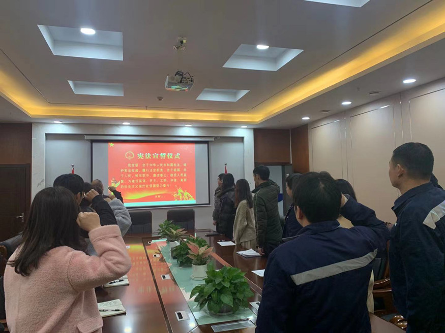 公司組織開展一系列憲法宣傳活動,掀起了一陣學(xué)習(xí)憲法的熱潮。一是組織全體干部職工關(guān)注“黃石司法”微信公眾號,積極動員大家開展憲法法律知識網(wǎng)絡(luò)有獎競答活動,公司共60余名干部職工參與測試,測試效果顯著,平均分達(dá)80分。二是組織青年干部職工觀看《身邊的憲法》公益宣傳片,深刻把握憲法核心要義,引導(dǎo)干部職工不斷深化對憲法的政治認(rèn)同和情感認(rèn)同。三是組織干部職工進行憲法宣誓,錚錚誓言詮釋對敬畏憲法、遵守憲法、維護憲法的使命感和責(zé)任感。四是通過公司微信公眾號平臺發(fā)布憲法文本,深入學(xué)習(xí)貫徹習(xí)近平法治思想,大力弘揚憲法精神,堅決維護憲法權(quán)威,切實推動憲法實施。