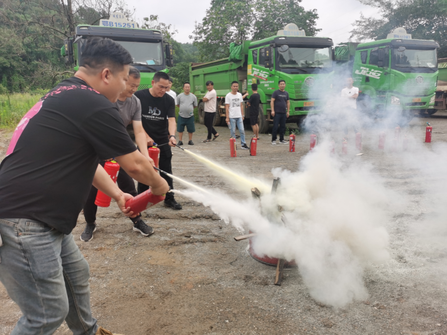隨后,消防應(yīng)急演練正式開始。演練采用了“先培訓,后示范,再實操”的形式。由渣土公司車隊隊長盧劍向大家講解并示范了消防器材的正確使用方法及發(fā)生火災(zāi)時的正確逃生方式。稍后組織參練人員進行滅火實操,通過實操,大家學會了如何正確使用滅火器,真正掌握了滅火的關(guān)鍵要點。