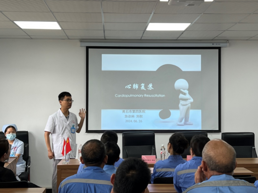 隨后,黃石市第四醫(yī)院急診科醫(yī)生劉權(quán)通過(guò)理論講解、示范操作、互動(dòng)交流和現(xiàn)場(chǎng)演練等方式,系統(tǒng)講授了如何實(shí)施心肺復(fù)蘇術(shù),對(duì)確認(rèn)現(xiàn)場(chǎng)環(huán)境、判斷意識(shí)、呼救求助、胸外按壓、開放氣道、人工呼吸、重新評(píng)價(jià)生命指證等環(huán)節(jié)一一進(jìn)行詳細(xì)講解和演示,并與大家積極互動(dòng),幫助參訓(xùn)人員在實(shí)際操作中感受了整個(gè)急救過(guò)程,較好地掌握了心肺復(fù)蘇法的操作技能,現(xiàn)場(chǎng)氣氛熱烈,培訓(xùn)效果很好。